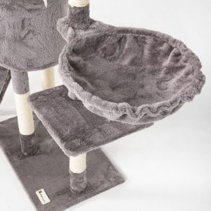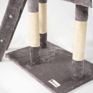 Las resistentes columnas de 6.5 cm de diámetro están recubiertas de sisal natural, ideal para el rascado, ayudando a mantener las garras saludables y protegiendo los muebles. Su base reforzada de 55 x 35 cm garantiza estabilidad y seguridad.