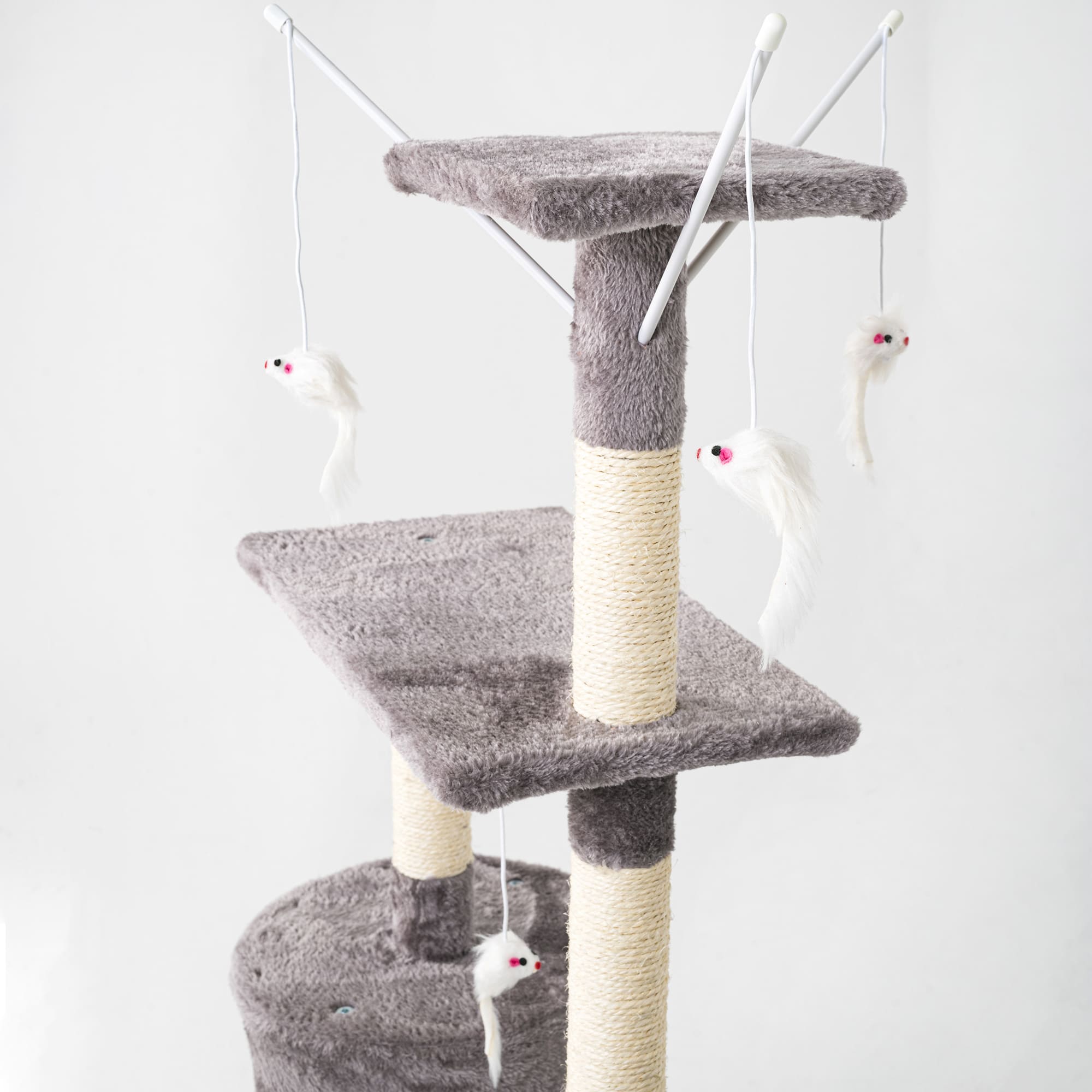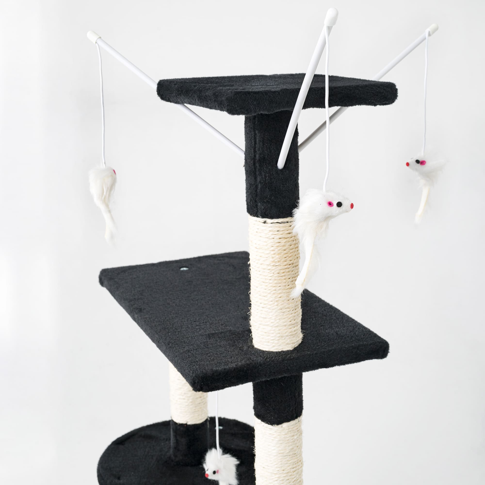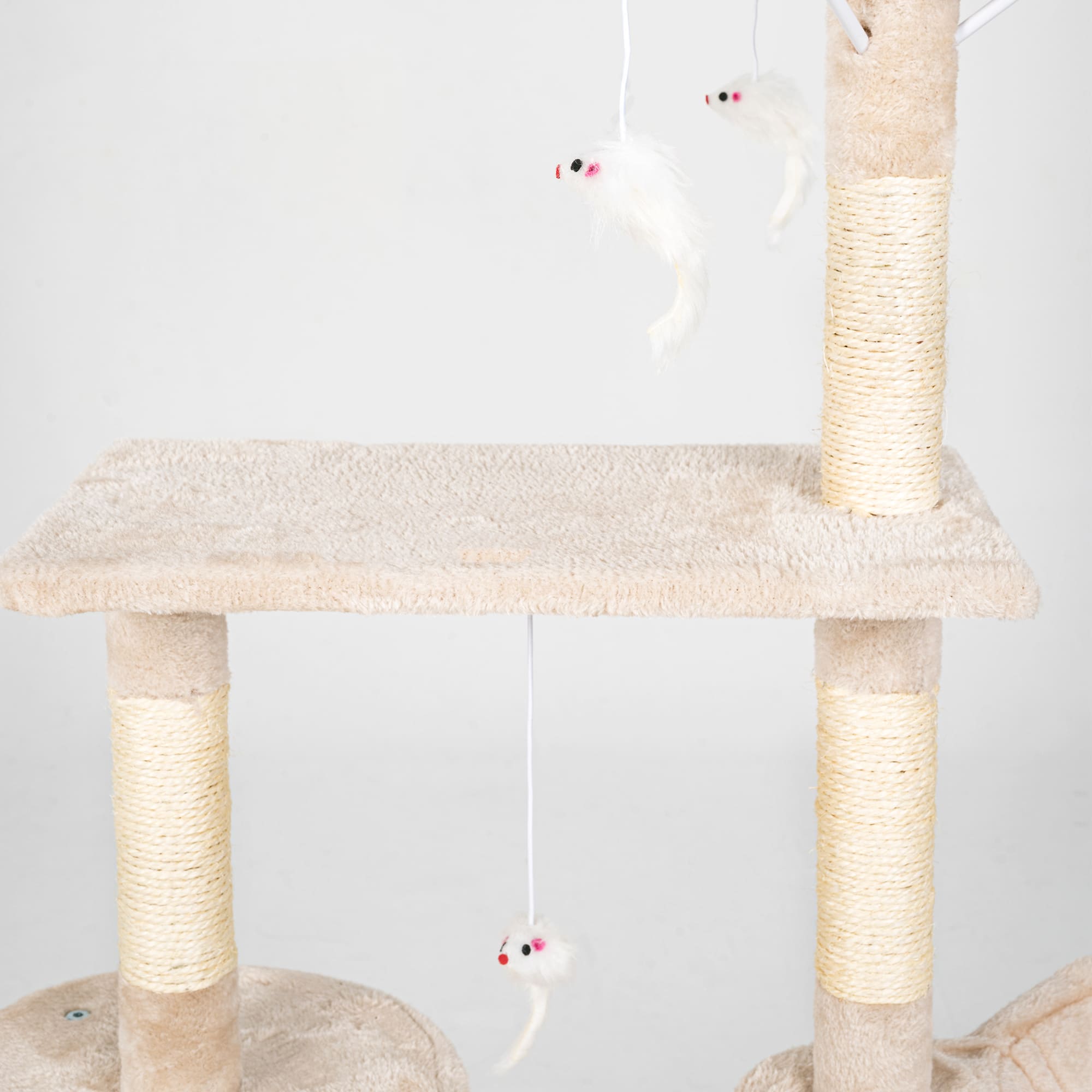 JUGUETES INTEGRADOS PARA UNA DIVERSIÓN EXTRA: Con 4 juguetones ratones colgantes, este árbol para gatos mantendrá a sus mascotas entretenidas durante horas. Estas ratas estimulan sus instintos naturales de caza y los mantienen activos. La construcción de alta calidad garantiza la durabilidad para el uso diario.