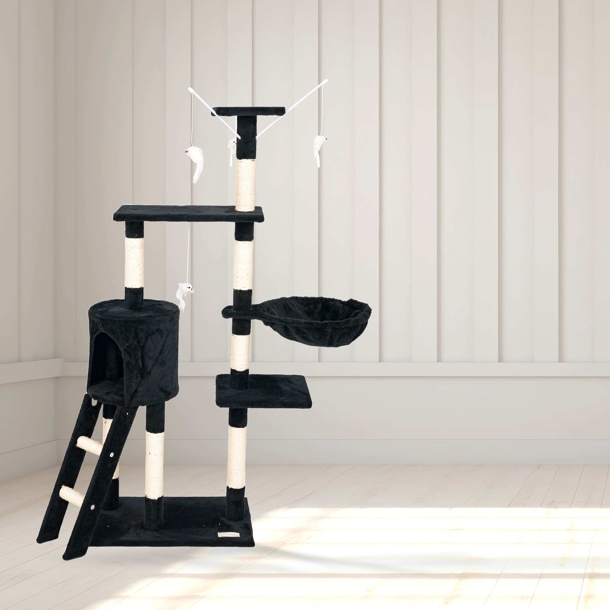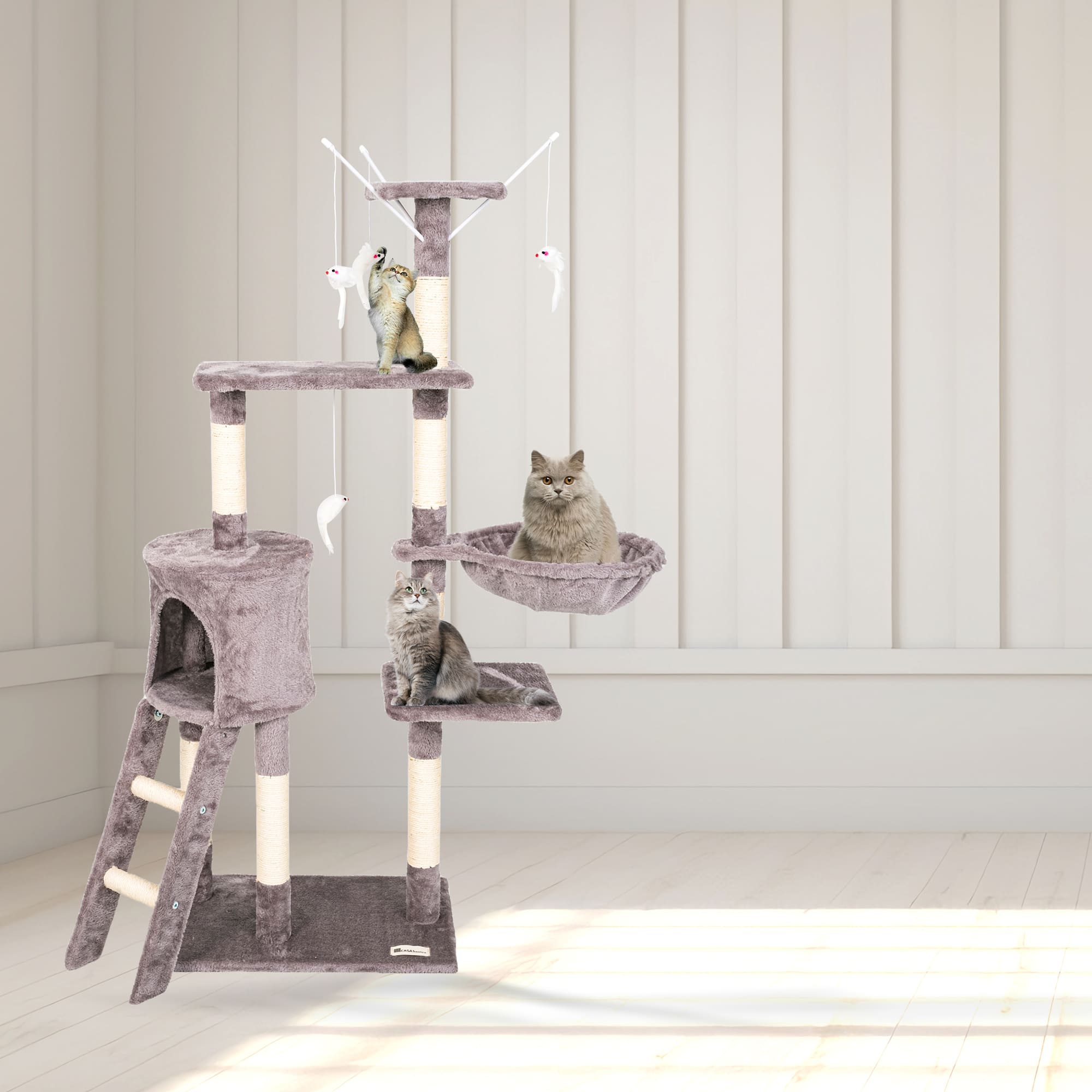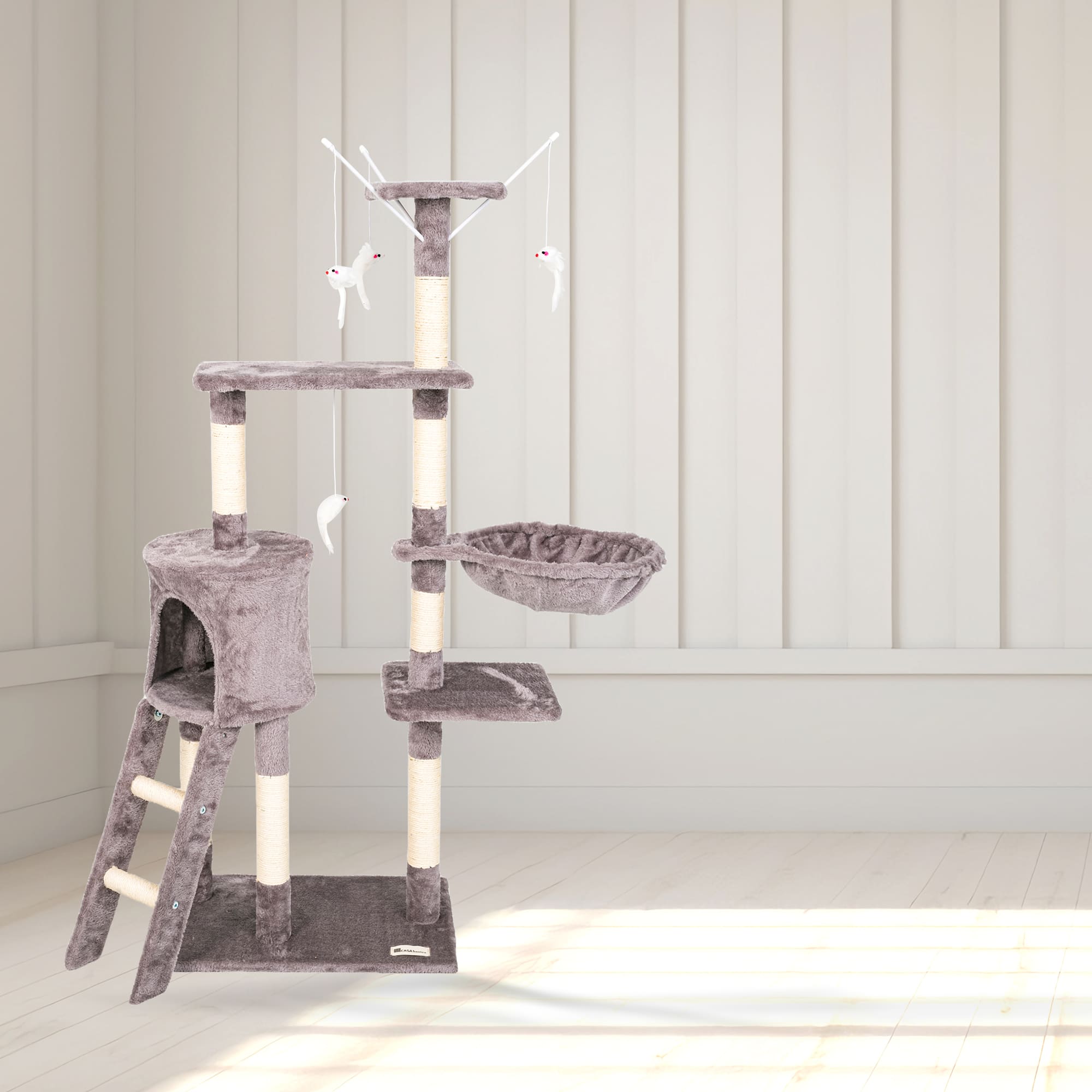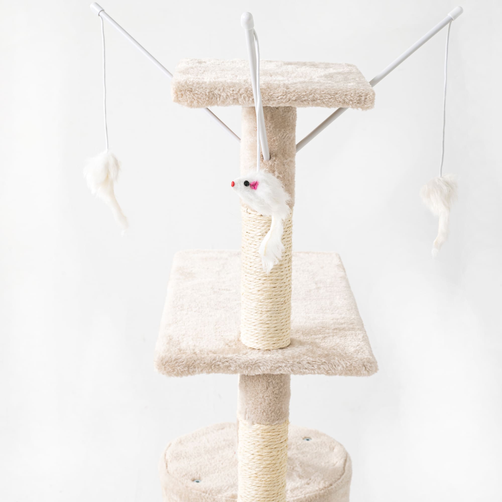JUGUETES INTEGRADOS PARA UNA DIVERSIÓN EXTRA: Con 4 juguetones ratones colgantes, este árbol para gatos mantendrá a sus mascotas entretenidas durante horas. Estas ratas estimulan sus instintos naturales de caza y los mantienen activos. La construcción de alta calidad garantiza la durabilidad para el uso diario.